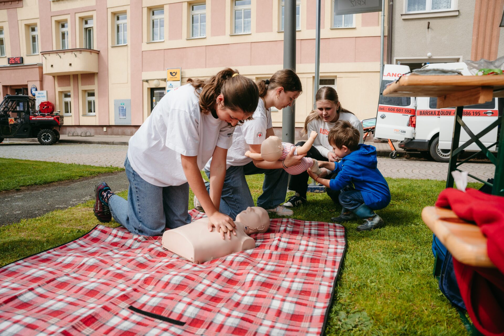 Nechyběla ani ukázka činnosti Báňské záchranné služby z Odolova, sanitky či výjezdového vozidla – a právě defibrilátory si lidé mohli zblízka prohlédnout i prakticky vyzkoušet.