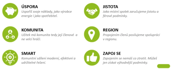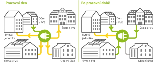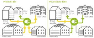 Jednoduše řečeno – elektřina, kterou někdo v regionu vyrobí a sám ji nevyužije, nemusí odejít v podobě tzv. přetoku pryč do sítě. Může ji využít někdo jiný – soused, místní firma nebo třeba škola.